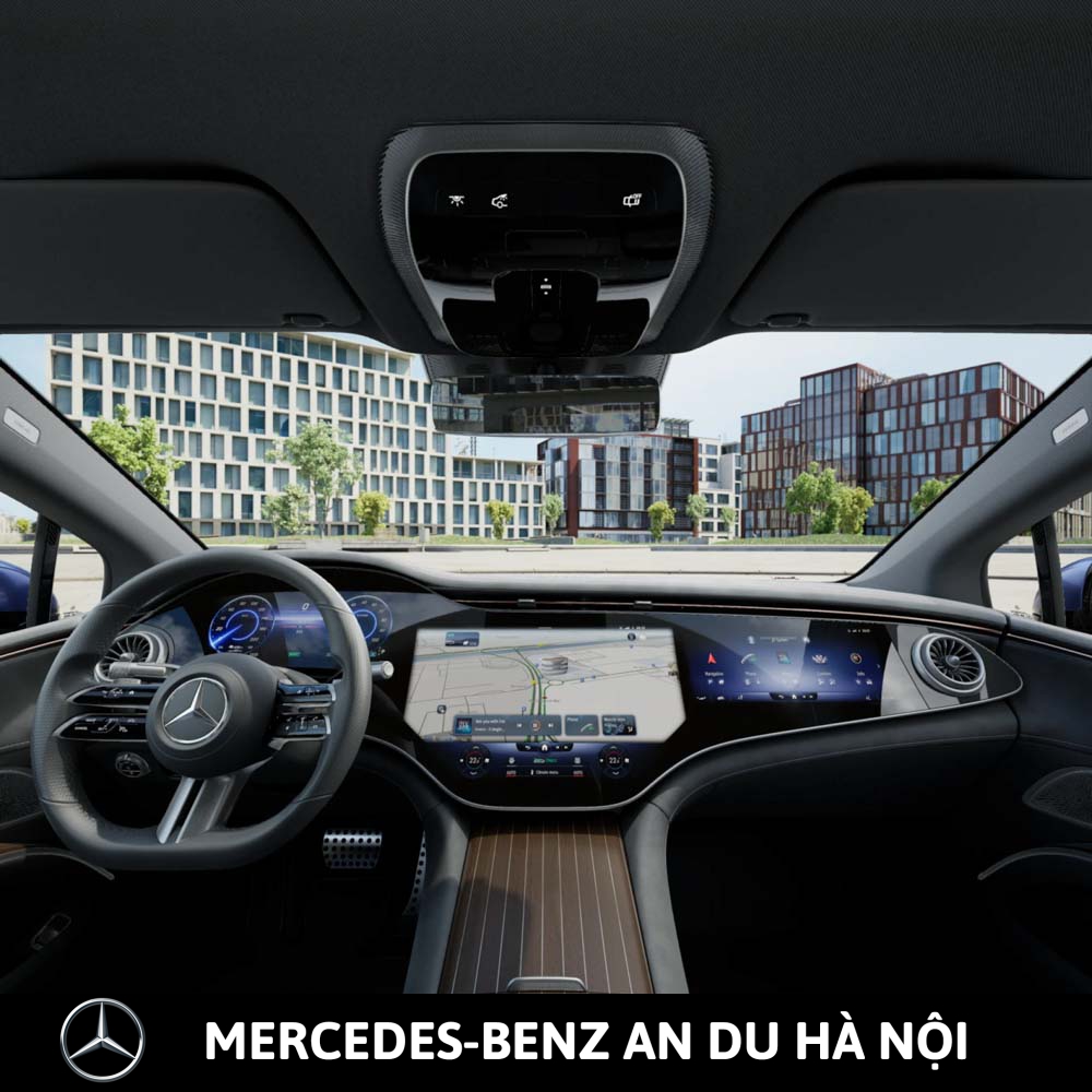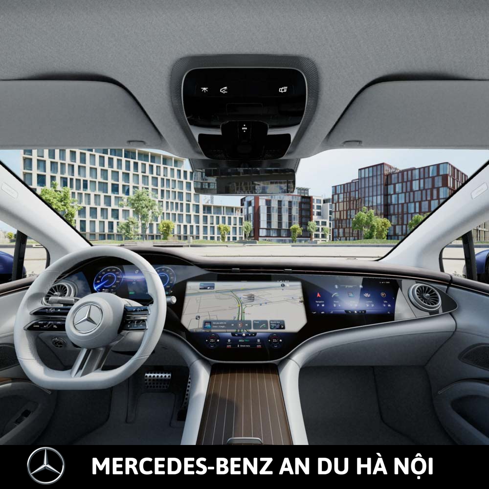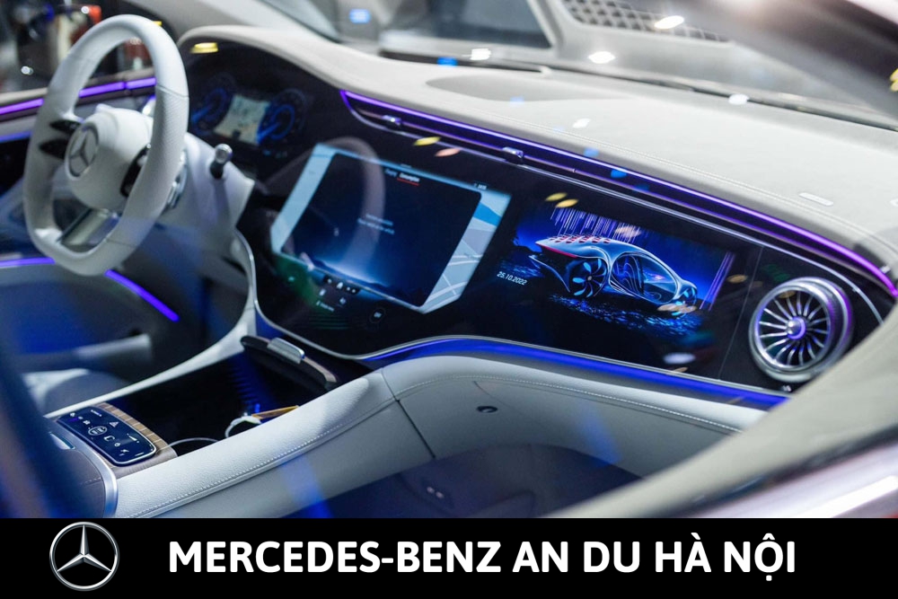 - Màn hình giải trí MBUX Hyperscreen với bảng đồng hồ kỹ thuật số 12,3-inch sau vô lăng, màn hình giải trí trung tâm OLED 17,7-inch (điều khiển cảm ứng) & màn hình hiển thị thông tin phía trước ghế phụ OLED 12,3-inch (điều khiển cảm ứng)